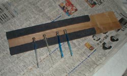 ウレタンマット(発泡スチロールでも可)を板に貼り付けた物を船べりに固定します。