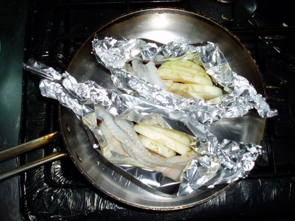 画像ではアルミは開いていますが、実際は閉じて蒸し焼きにして下さい。
