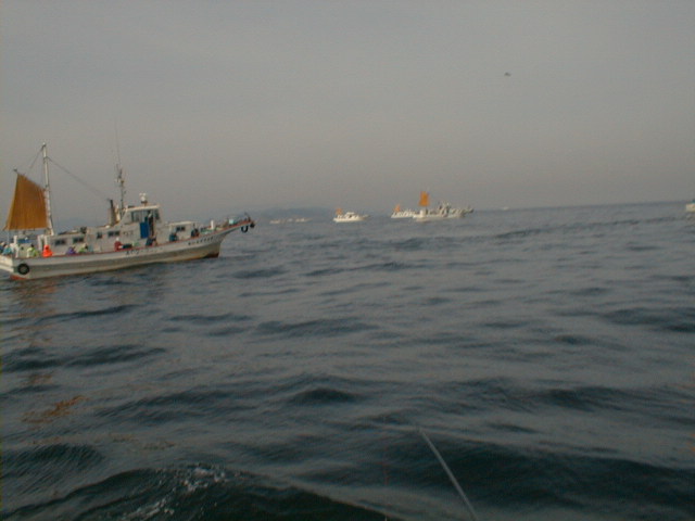 予報波高が50pの時の実際の内海(伊勢湾)の海上の様子です。 @は完全な「ベタナギ」です。 Aもベタナギみたいなものです。 この2つの波なら、オマツリを解いていても、下を見ていても、まず酔いません。 Bは少し風が有りました。 それでも乗合船は揺れません。 この程度の波では、よほど体調でも悪くない限り船酔いはしません。 ただ、長時間のオマツリ解きは厳しいかも。 目視観測では、波が無いか、有ってもさざなみ程度です。 たまに50pの波高が有り、100pの波高も1回の出船で数発はやって来ます。 |