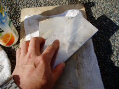 砥面に少し水をかけながら削る |