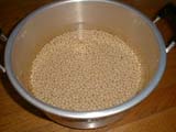 この作業は大豆が煮あがる少し前に行います。