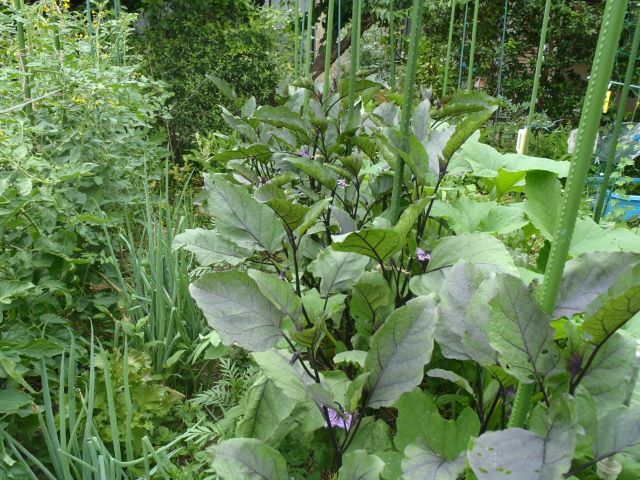 ナスとピーマンの間の隙間に植えてあるから密林状態。