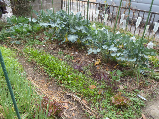 背が高くなり、野菜への日当たりが悪い時は邪魔な部分だけハサミで切り、切った部分は畑に放置。