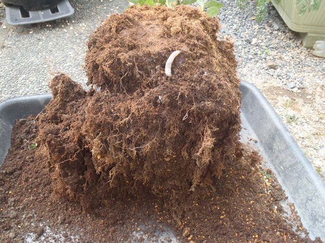 鉢から抜いて気が付いたが、そもそも根がぜんぜん回って無く鉢の中がスッカスカ状態。