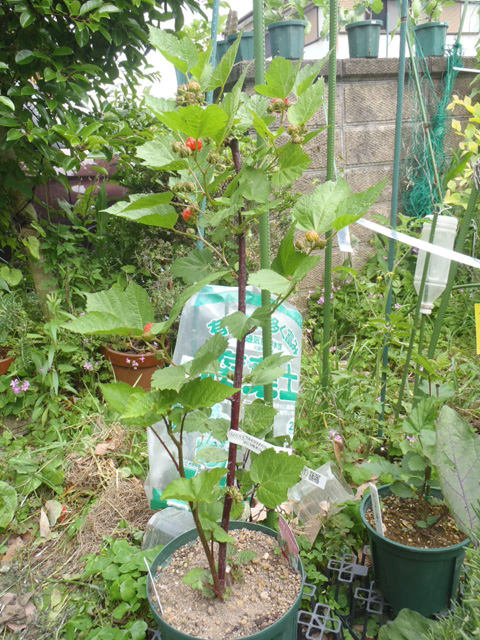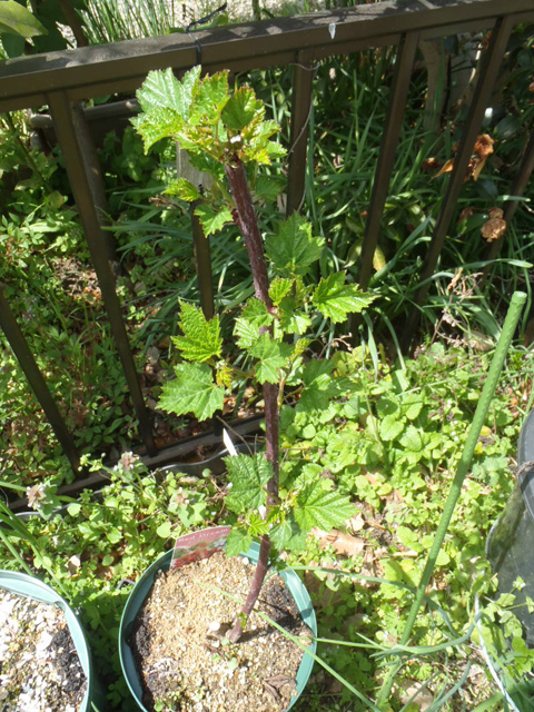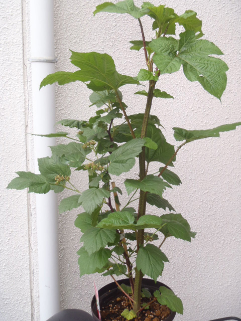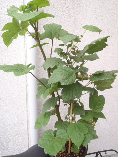 今年の新梢がどんどん伸びて6号鉢では支えきれない感じになって来ました。