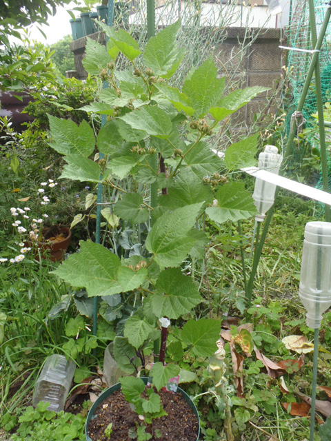 成長が早いとは聞いていましたが、こんなに早く葉っぱが大きくなるとは、しかも花芽までふくらんできました。