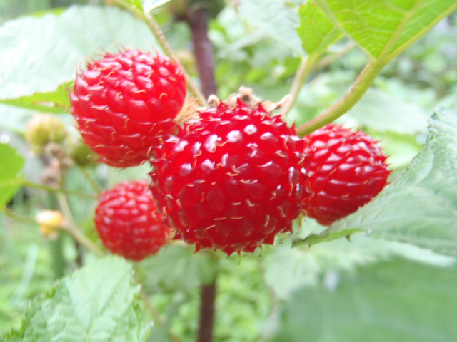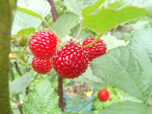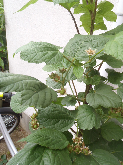 イチゴが終わりになってきたので、ラズベリーをヨーグルトに入れて食べます。