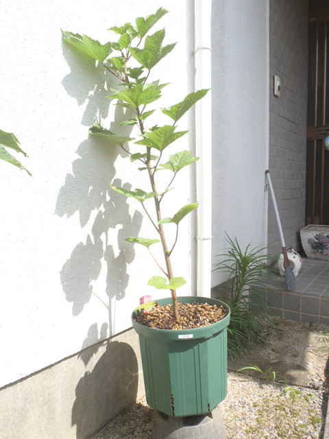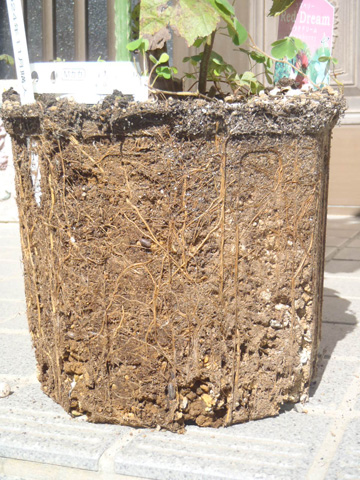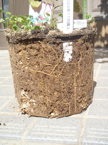 さすがに根が張って来たのか、水の落ちが悪くなってきたので7号鉢を10号鉢に鉢増しを行いました。