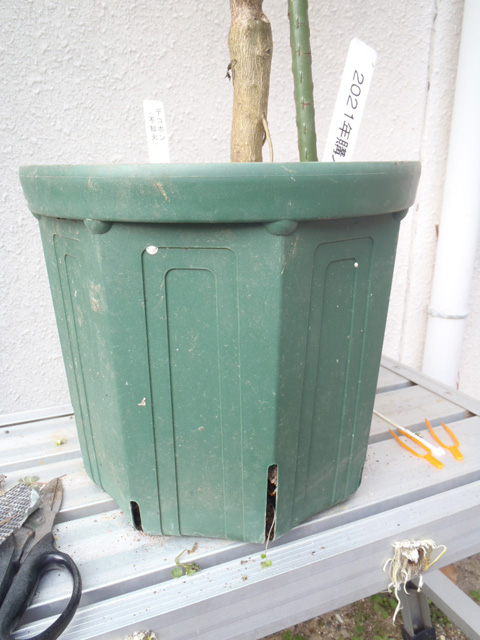 と言っても、スリット鉢9号を10号に1サイズアップしただけなので、鉢の直径で3pほど大きくなっただけ。