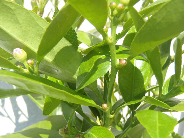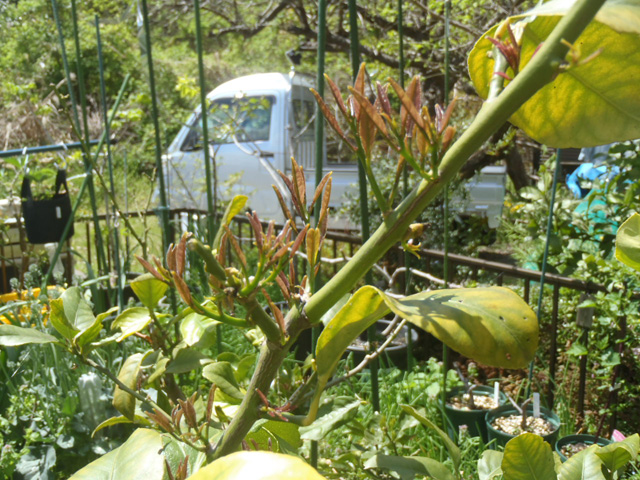 この木は昨年末に購入仕立てですので実を生らすと成長が遅くなってしまします。