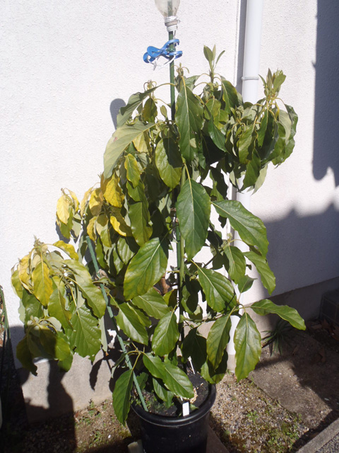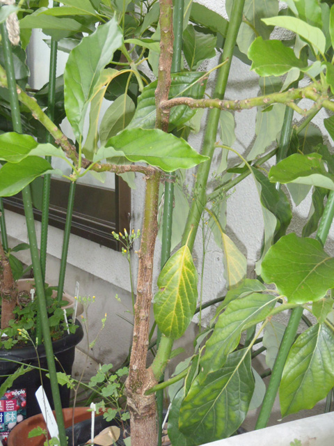 冬場の管理ミスでベーコンの枝の上部の葉っぱが枯れ落ちてます。