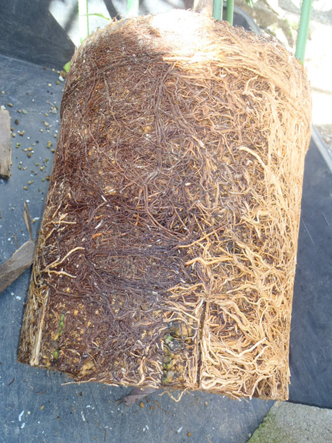 この部分は根が枯れてる(死んでる)のだけど、原因がわからなかった。