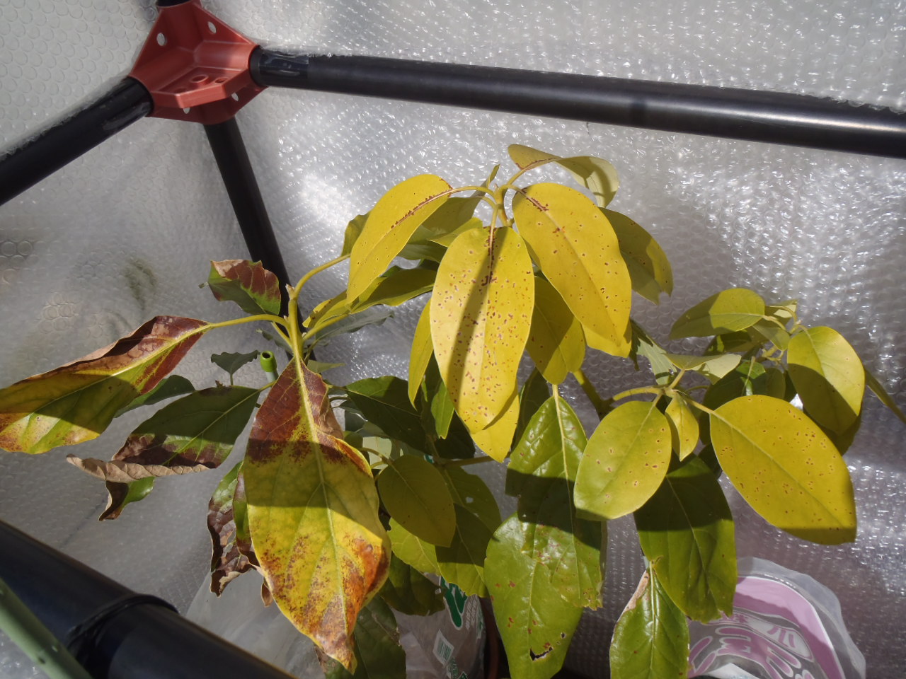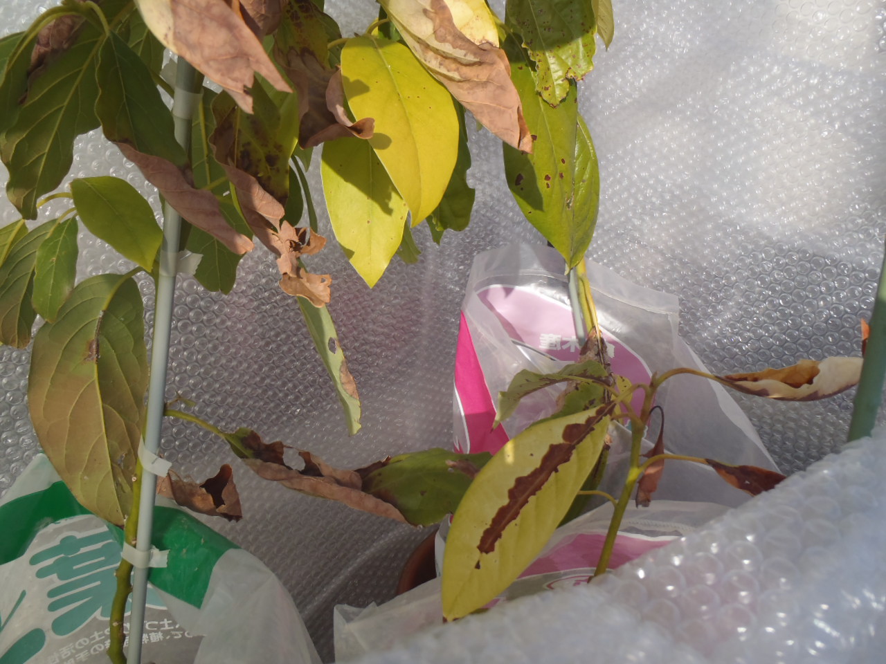 今年は気温が低く、最低気温が0度前後の日が続いているため、アボカドが痛んできました。