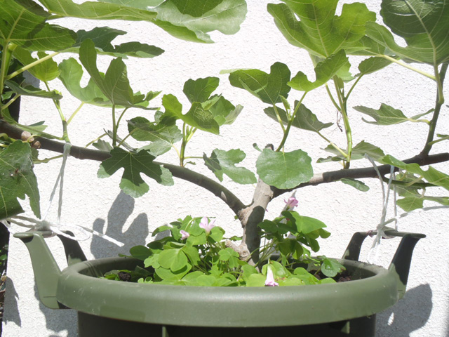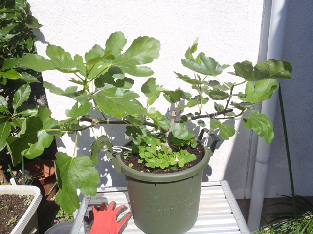 先週、鉢まししたイチジクに肥料をあたえトリミング(剪定)しました。