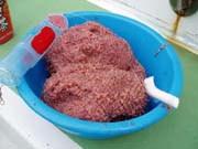 エサは冷凍小ハゼ、冷凍イサザ、魚の切り身などが配られます。