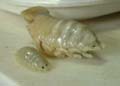 小型円形で扁平、裏返すと大きな目のように見える一対の吸盤や脚があります。