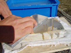 砥面に少し水をかけながら削る |