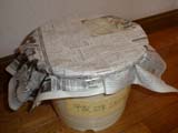 新聞紙で覆い、まわりをヒモできつく縛ります。