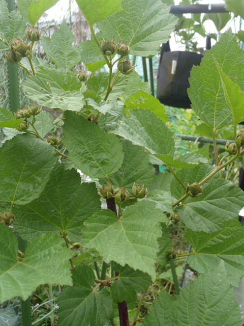 成長が早いとは聞いていましたが、こんなに早く葉っぱが大きくなるとは、しかも花芽までふくらんできました。