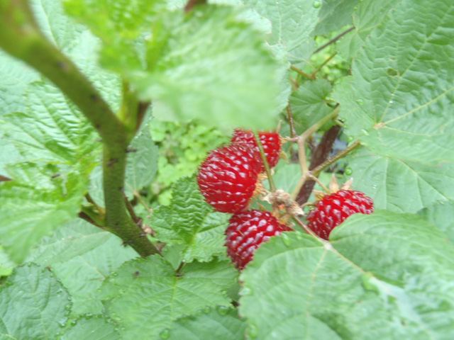 イチゴが終わりになってきたので、ラズベリーをヨーグルトに入れて食べます。