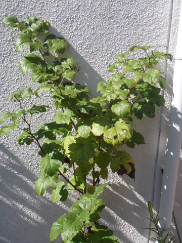 今年の新梢がどんどん伸びて6号鉢では支えきれない感じになって来ました。