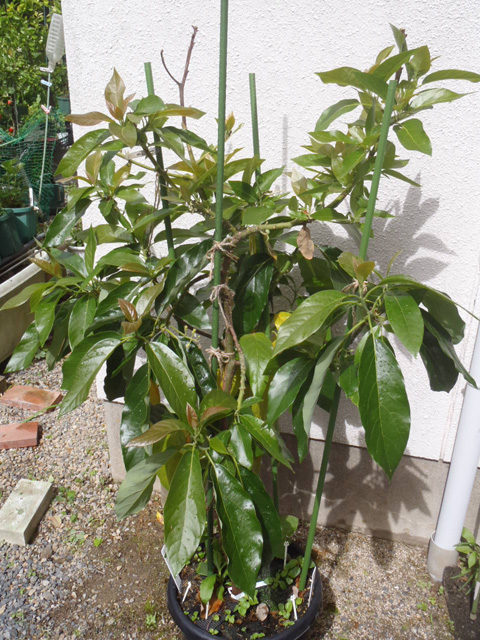 冬場の管理ミスでベーコンの枝の上部の葉っぱが枯れ落ちてます。