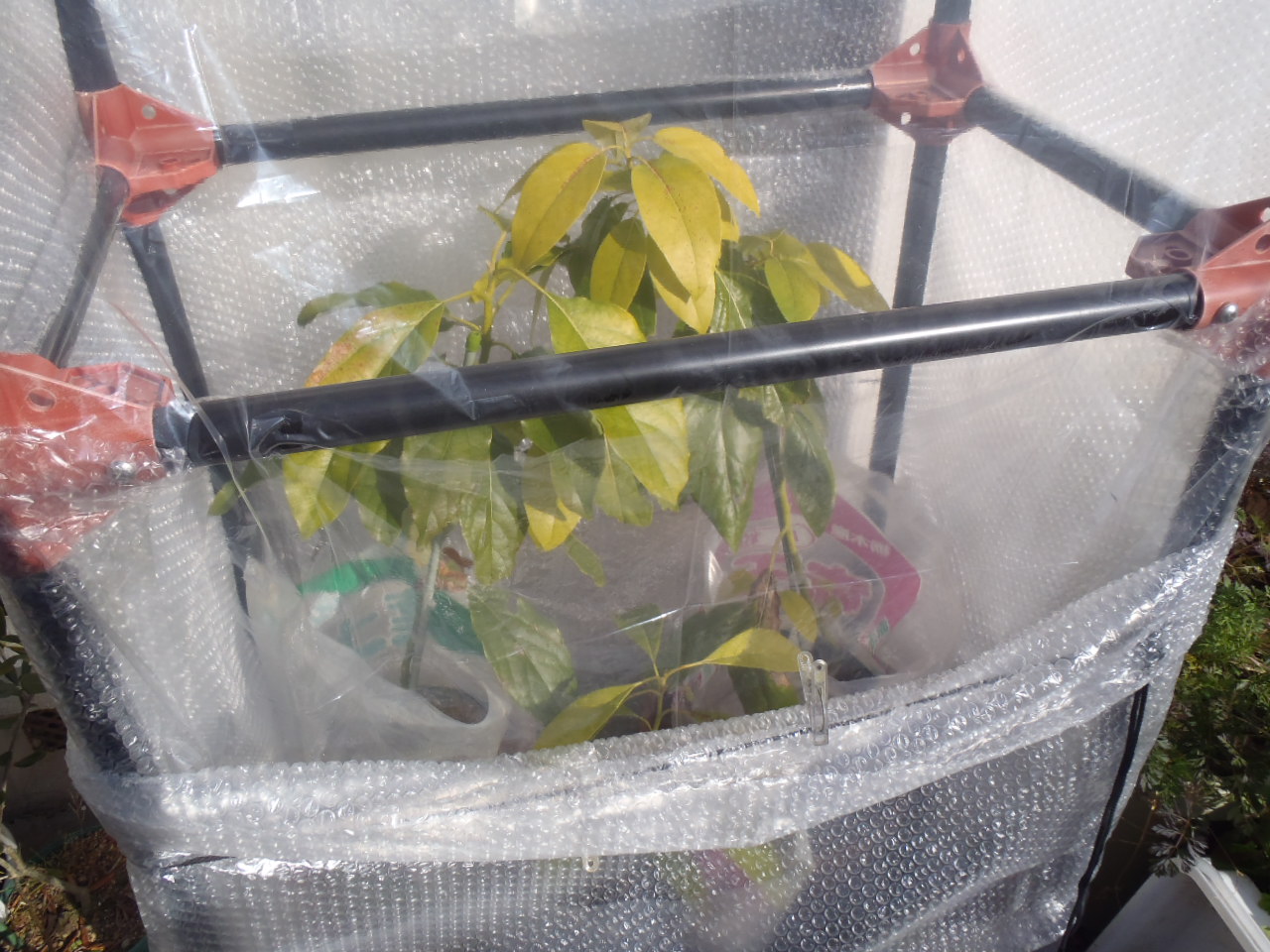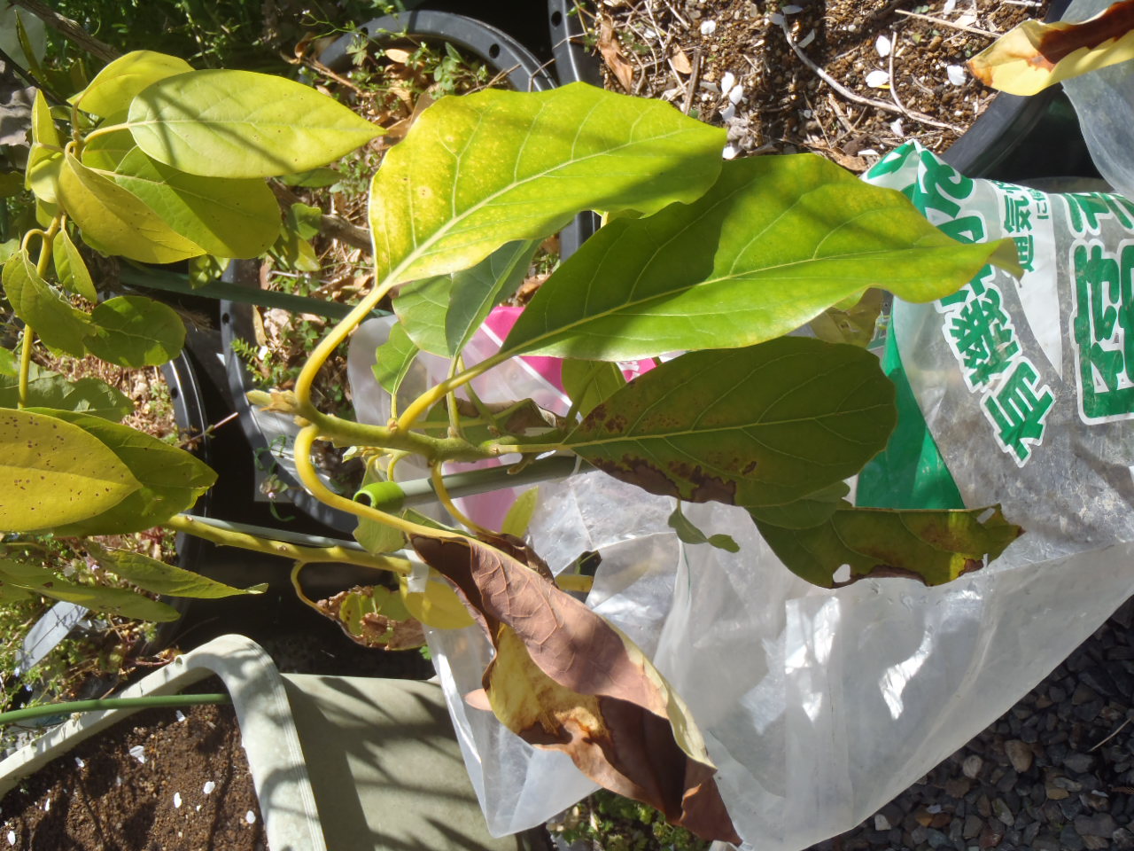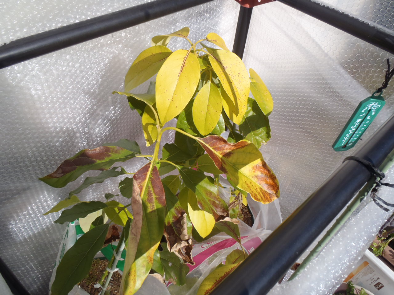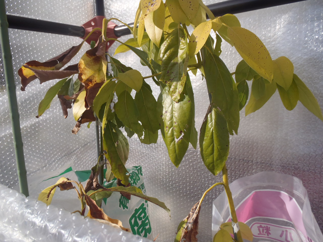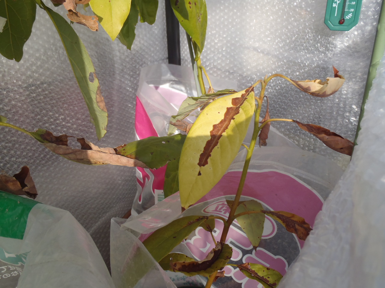 今年は気温が低く、最低気温が0度前後の日が続いているため、アボカドが痛んできました。