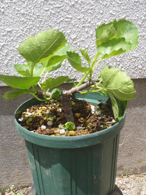 先週、鉢まししたイチジクに肥料をあたえトリミング(剪定)しました。