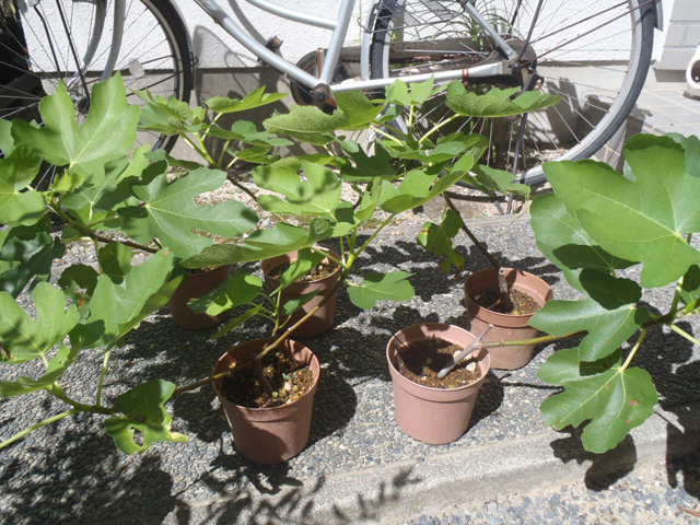 水管理がたいへんになり、挿し木した5個の鉢替えをしました。